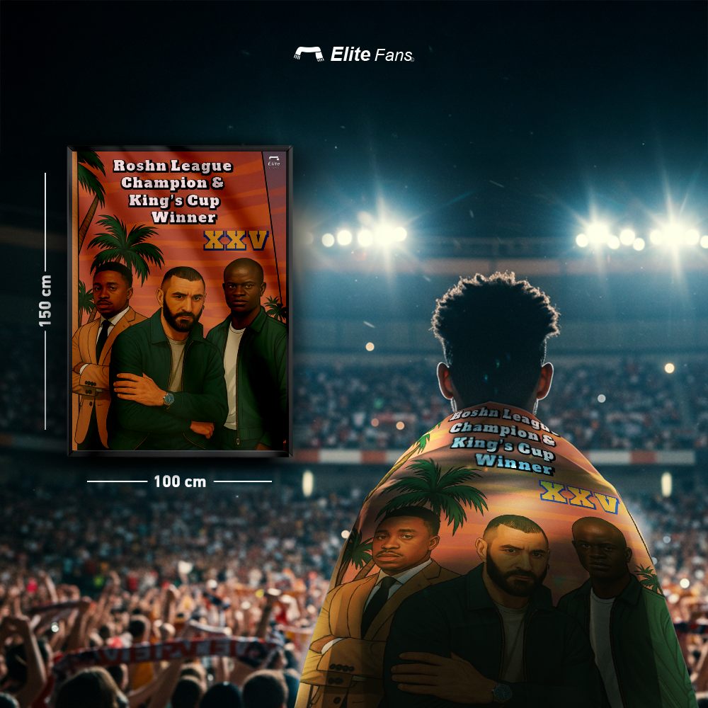 • يحمل عبارة "ROSHN LEAGUE CHAMPION & KING’S CUP WINNER" توثيقًا لموسم اتحادي استثنائي.